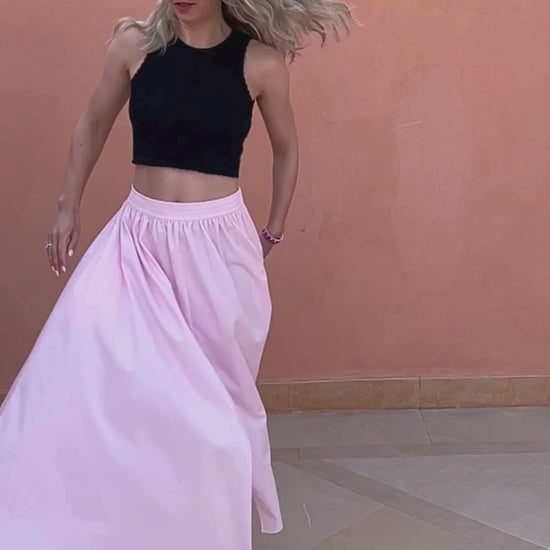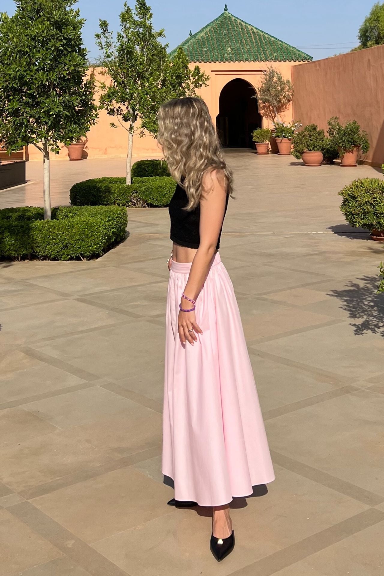 Designed to pair effortlessly with crop tops, it adapts whether you're leaning urban or elegant. Style it with ballerinas for ease, kitten heels for polish, or oversized sandals for that sun-drenched, relaxed feel. A summer staple.